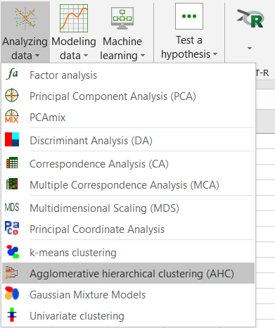 Once XLSTAT-Pro is activated, go to XLSTAT / Analyzing data / Agglomerative Hierarchical Clustering.
