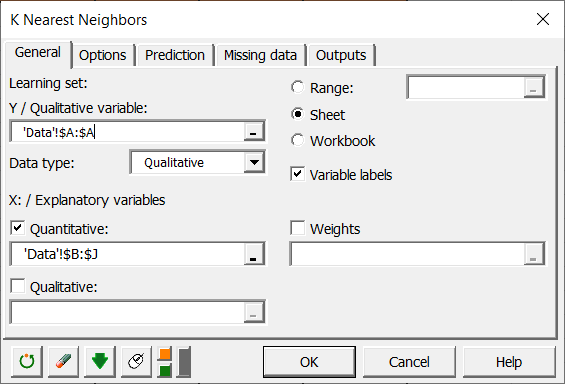 Setting up a K Nearest Neighbors Classification in XLSTAT
