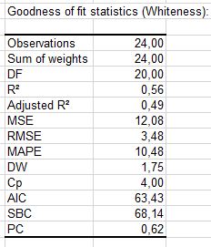 The first results displayed by XLSTAT are the goodness of fit coefficients, including the R² (coefficient of determination), the adjusted R² and several other statistics.