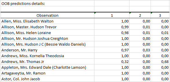 The next table contains for each observation the probability to belong to the different category of the response variable (based on the Out-Of-Bag data).