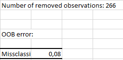 The first output is the OOB error rate of the random forest. It corresponds to the average classification error committed on each OOB sample of the training set. We call OOB sample, the sample made up of all the Out-Of-Bag observations. More details are available in the Help menu.