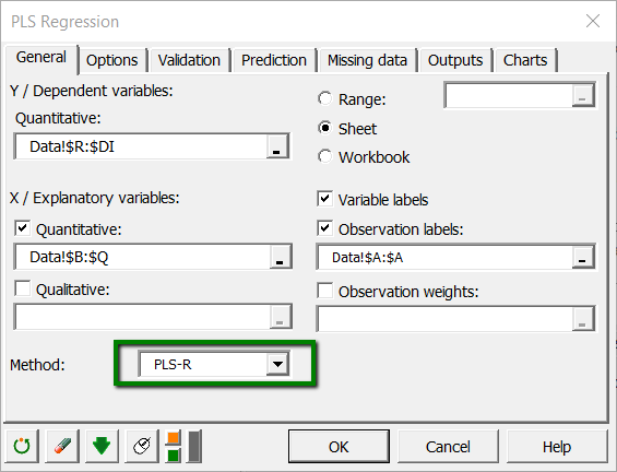 Once you have clicked the button, the Partial Least Squares regression dialog box is displayed.