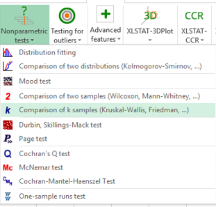Once XLSTAT-Pro is activated, select the XLSTAT / Nonparametric tests / Comparison of k samples command.