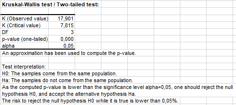 Dataset for running a Kruskal-Wallis test in Excel using XLSTAT