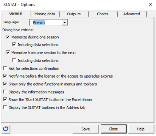 If you want to change the language settings of XLSTAT, select the Options command in the XLSTAT menu, or click on the