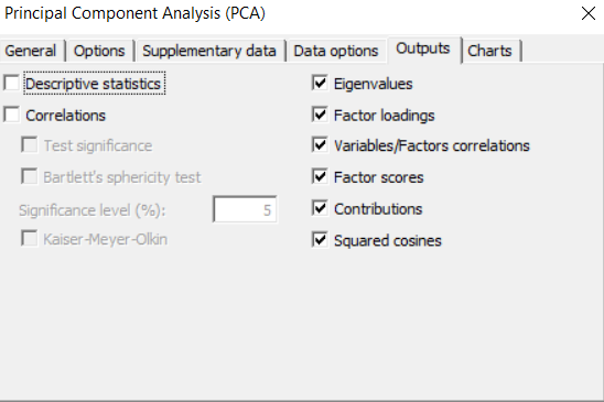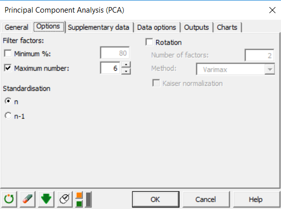 Go to the next tab Options. For the option Filter factors, choose Maximum number and set the value to six. This way all the components will be calculated.