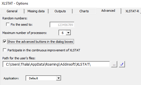 Once XLSTAT-Pro is activated, go to the menu Options and in the tab Advanced enable the option Show the advanced buttons in the dialog boxes.