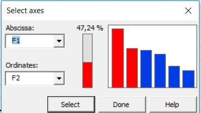 Now choose the plot for the axes F1 and F2 by clicking Select, then change the selection to Abscissa F3 and Ordinates F4. Once you have completed this click again on Select and then press Done.