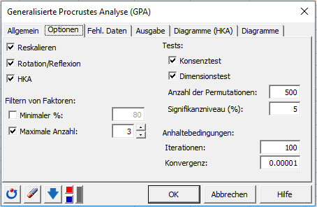 Die nächsten Ergebnisse entsprechen den Ergebnissen des HKA-Schritts (nicht standardisierte HKA). Während die GPA bereits einen Rotationsschritt für jede Konfiguration beinhaltet, damit diese die Konsenskonfiguration am besten trifft, so entspricht die HKA hier der optimalen Transformation der Konsenskonfiguration unter den gewohnten HKA Bedingungen. Die HKA Transformation wird dann auf jede Konfiguration entsprechend dem zugehörigen Experten angewandt.