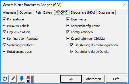 Die Ergebnisse sind in die Ergebnisse, die der Konsenskonfiguration entsprechen und die den Ergebnissen für jede einzelne Konfiguration entsprechen, aufgeteilt. Die Objektkoordinaten der Konsenskonfiguration könnten später in einer PREFMAP Analyse als Produktkoordinaten in der Präferenzkarte benutzt werden.