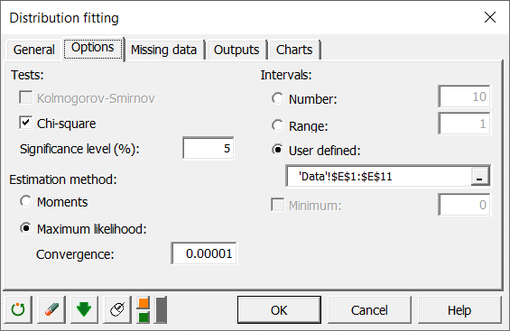 The Distribution fitting dialog box then appears. Select the data on the Excel sheet named Data.