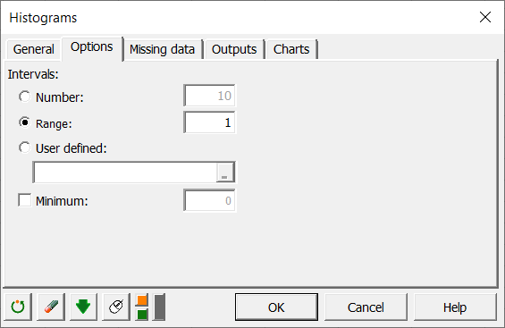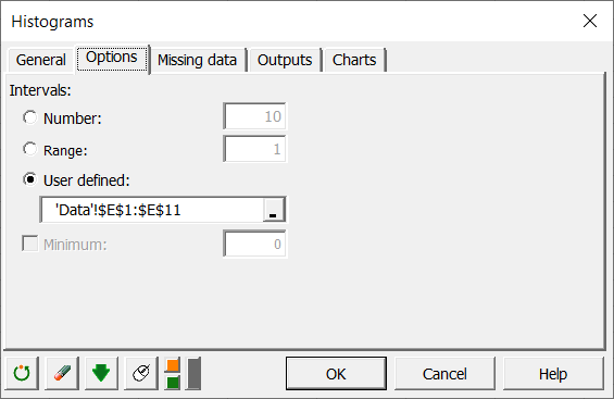 In the Options tab, activate the Goodness of Chi-square tests, which is necessary to test our assumption. We use the bounds that we defined above.
