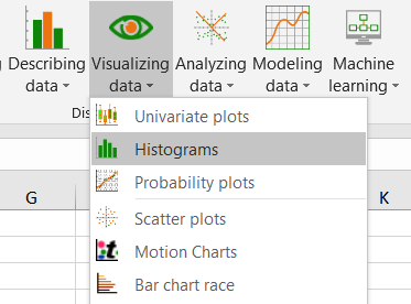 Once XLSTAT is open, select the XLSTAT / Visualizing data / Histograms command (see below).
