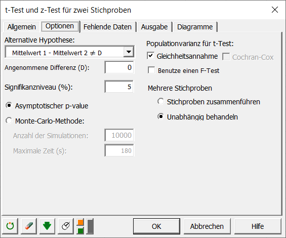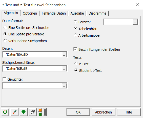 Einrichten eines Student-t-Tests für zwei unabhängige Stichproben