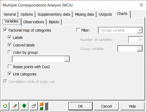 Einrichten des Dialogfensters multiple Korrespondenzanalyse