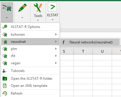 Once XLSTAT is open, select the XLSTAT-R / neuralnet / Neural networks command as shown below: