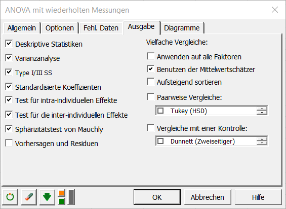 Im Anschluss an die vier Analysen werden zusätzliche mit dem wiederholten Design verbundene Ausgaben angezeigt.