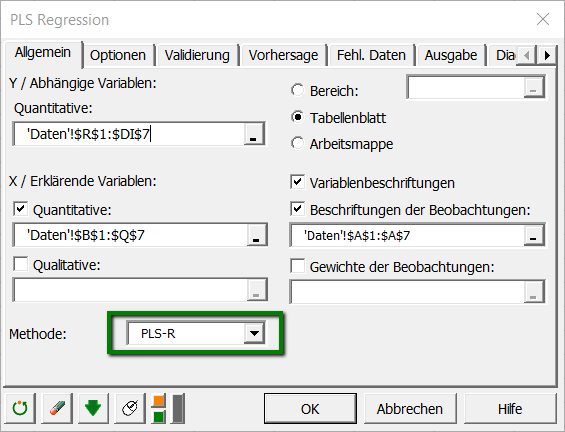Erstellen einer Partiellen Kleinsten Quadrate Regression