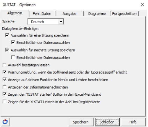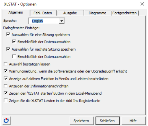 Wenn Sie die Sprache der Setting von XLSTAT ändern möchten, wählen Sie "Optionen" aus dem XLSTAT Menu oder klicken Sie auf