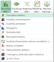 1. Wählen Sie nach dem Öffnen von XLSTAT den Menüpunkt XLSTAT / Daten beschreiben/ Deskriptive Statistiken aus (siehe unten).