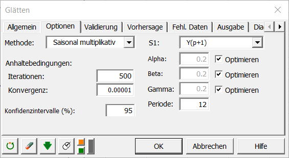 In der Registerkarte Optionen wählen Sie die Submethode saisonal multiplikativ.