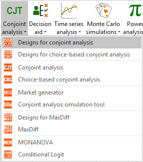 These steps can be carried out for a full profile conjoint analysis or a choice based conjoint analysis (CBC).