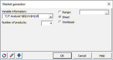 The main advantage of conjoint analysis is that it allows to simulate a market even if the products in the market have not been tested by the individuals. In our case, the market for an ice cream is analyzed and we would like to know the impact and market shares associated with a new product (named Product 4). This product is an organic raspberry ice-cream which is not low fat and served in a homemade waffle. We know that in today's market there are 3 ice-cream that have different characteristics, the following table shows the simulated market: This table will be needed for the market share simulation. In order to easily create this table, you can use the Market generator tool as follow: To generate the market table containing the different products, you need to select the Variable information table displayed on the CJT Analysis sheet and indicate the number of products you want to generate. Then click OK. A new window pops up asking to choose the characteristics of each product. When a product has been defined, you can either continue to the next one or stop building the table. Usually, the new product we want introduce to the market is the last one. In our case, this is Product 4. After the market generation, you can start the simulation. To do that, click on CJT / Conjoint analysis simulation tool. You can then select the data. In order to facilitate data selection and avoid to manually select the four datasets required (Utilities, Variable information, Simulated market, Product ID), click on the magic stick. This will automatically load the four datasets if the conjoint analysis and the simulated market have been generated with XLSTAT and if the two worksheets have not been manually modified (addition of rows or columns…). Then select any cell of the sheet containing results of conjoint analysis and any cell of the worksheet containing the market generated with XLSTAT. In this example, we select the cells H13 of the CJT Analysis and Market Generator sheets. Then click OK. You can also select your data manually: Utilities can be found in the CJT Analysis sheet; the table of information about variables is obtained in the CJT analysis sheet. The simulated market is on the Market generator sheet (do not select the names of products). You can also select the name of the product just behind the Product ID button. Select the Full profile model and the logit method for simulation. Once you click on the OK button, the calculations are performed and the results are displayed. The table shows that the market share for the new product (product 4) is almost 40%. This result seems satisfactory in order to launch the product on the market. In order to quickly evaluate the impact of other changing on the new product (you may want to know what would be the market share if the flavor of the new product is mango instead of raspberry), you can modify the categories of the last product (blue row) in the Simulated market table by clicking on the categories you want to change. Once the categories are modified, you can click on the Run again button (just below the simulated market table). Market shares and associated charts will be automatically updated. We can see in this example that market share slightly decreased with the mango flavor. So, it would be better to include a raspberry flavor in the new product.