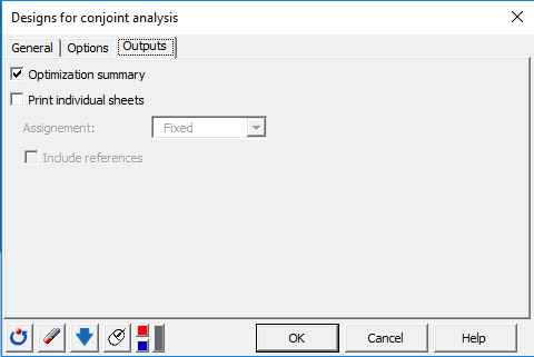 Once you click the OK button, the calculations run and the results are displayed. The first table summarizes the generated model. The second table is a summary table of prohibited combinations. The third table shows the conjoint design starting with the profiles on the left part. The right part of the table has to be filled with the rankings of each respondent.