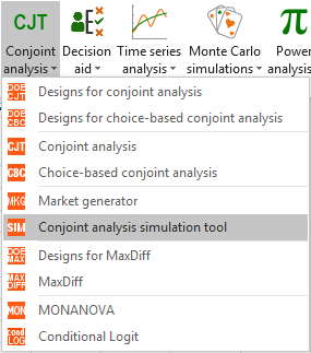Once the market is generated, you can start the simulation. To do that, click the CJT icon and choose the function Conjoint analysis simulation tool.