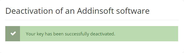 Your license is now successfully deactivated. If you wish to activate XLSTAT on a new computer or change your license key, please follow to activate your license.