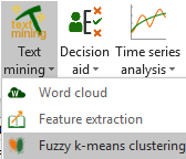 Once XLSTAT is activated, select the XLSTAT / Advanced features / Text mining / Fuzzy k-means clustering command (see below).