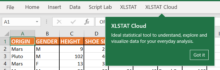 Now click on XLSTAT Cloud shortcut in the Excel ribbon.