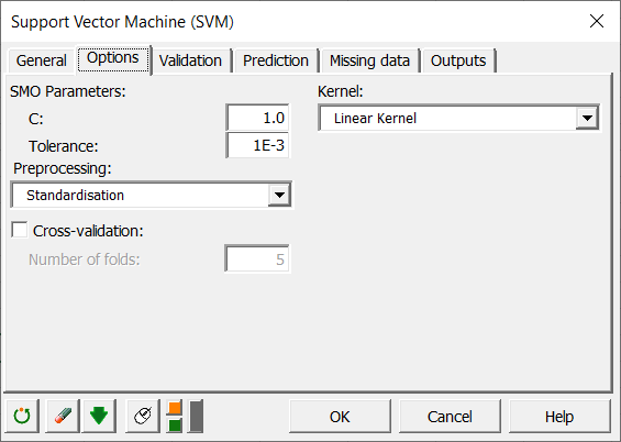 Para configurar un clasificador SVM, haga clic en Aprendizaje automático / Máquinas de vectores de soporte (SVM) como se muestra a continuación: