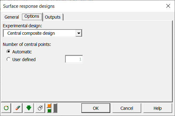 In the Options tab, select a central composite design as the type of design.