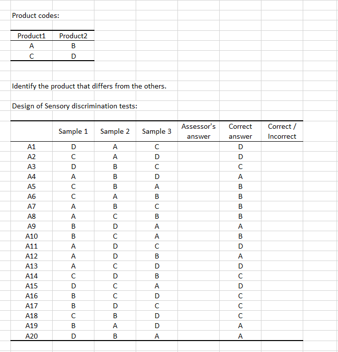 Dataset for running a discrimination triangle test in sensory analysis