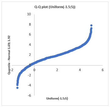 A second sample is then generated using a Uniform distribution bounded between -1.5 and 5.