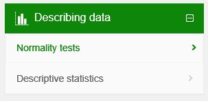 The next step is to test the normality of the two samples. Click on Normality tests in the Describing data menu: