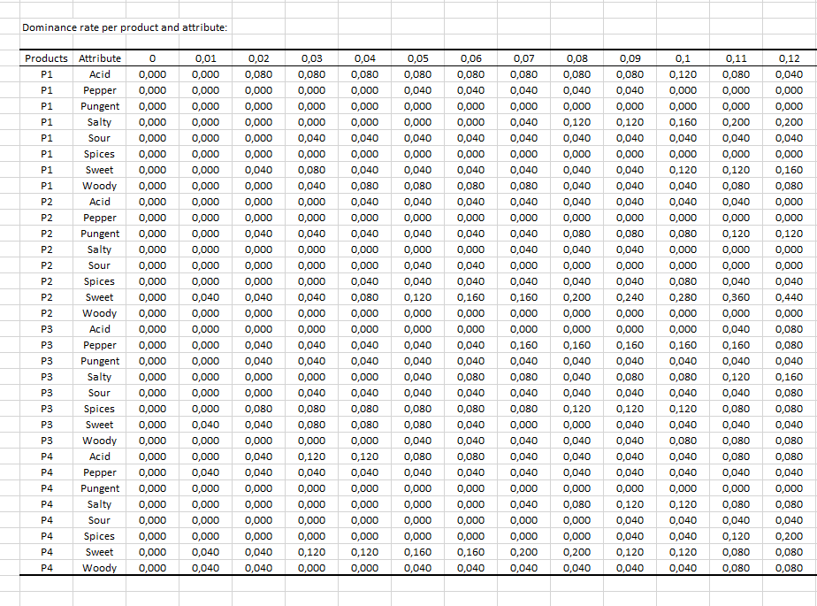 Nuestro objetivo en este tutorial es identificar los atributos dominantes como una función del tiempo para una lista de productos evaluados por un panel de expertos.