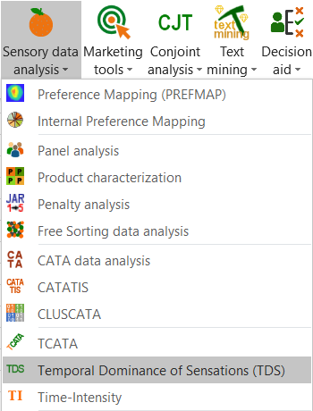 Para realizar un análisis de TDS, haga clic en XLSTAT - Análisis de datos sensoriales / Dominación temporal de sensaciones (TDS)