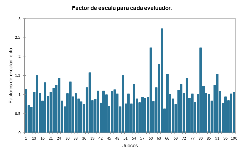 Otro resultado importante es el peso dado por CATATIS para cada juez. De hecho, cuanto menor es el peso de un juez, más atípico es su punto de vista. Por ejemplo, aquí los sujetos 60 y 64 son muy atípicos.