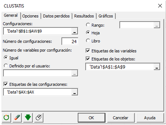 Aparece el cuadro de dialogo de CLUSTATIS.