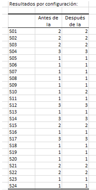 La siguiente tabla muestra las clases de las diferentes configuraciones antes y después de la consolidación. Parece que solo la asignatura 10 cambió de clase con la consolidación.