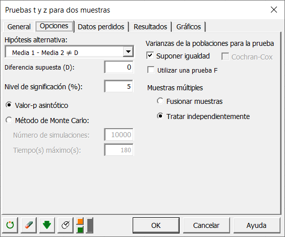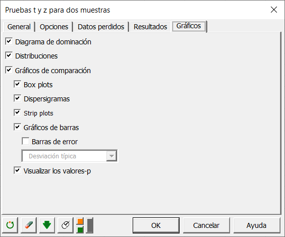 En la pestaña Opciones, dejamos las opciones predeterminadas. En la pestaña Gráficos, activamos la opción para el Diagrama de dominación.