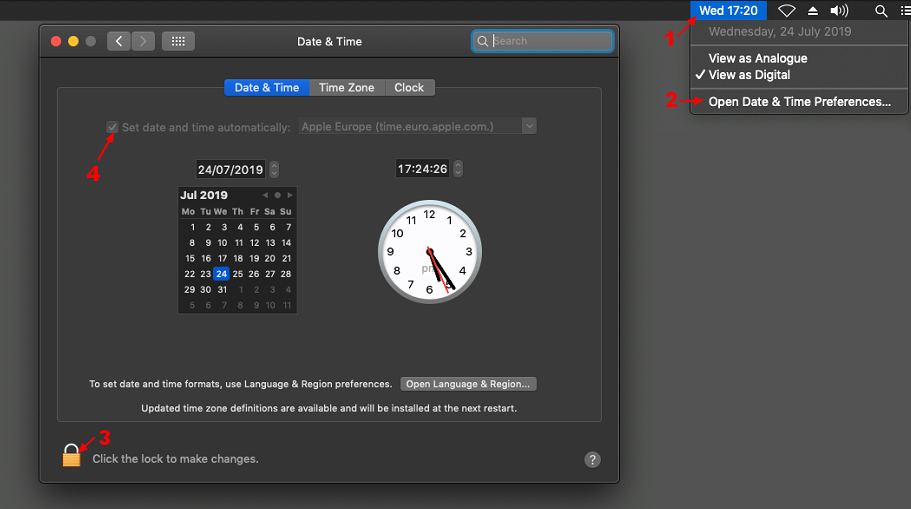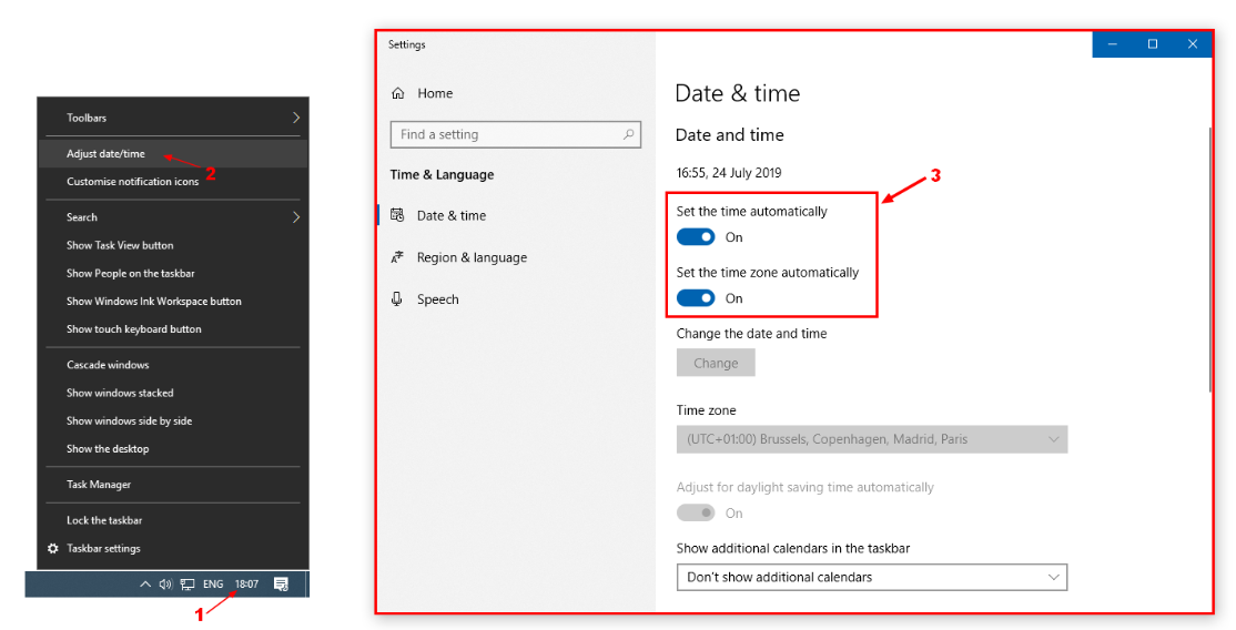 If they are different by more than a few seconds or minutes, it means the clock of your computer is not synchronized. Follow the procedure above to fix it.