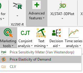 Once XLSTAT is launched, select the Advanced Functions / Marketing Tools / PED menu.