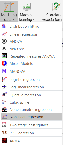 After opening XLSTAT, select the XLSTAT / Modeling data / Nonlinear regression feature.
