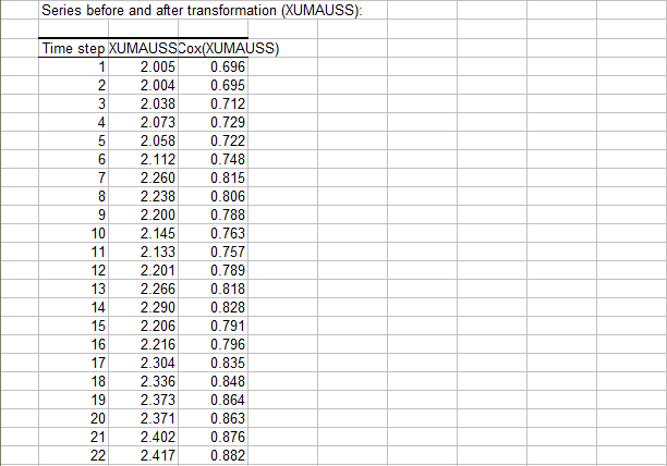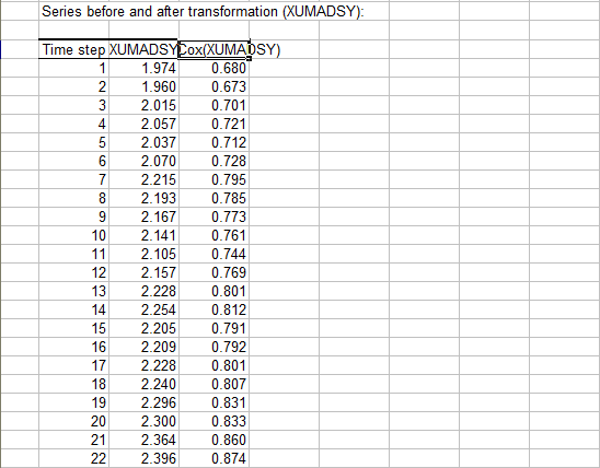 Una vez se hace clic en OK, se realizan los cálculos y las dos series transformadas se muestran en una nueva hoja.
