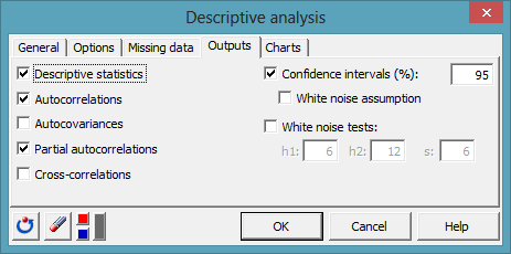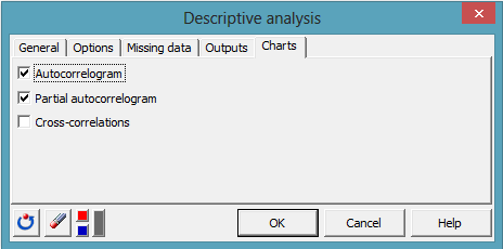 En la pestaña Resultados, asegúrese de que están activadas las opciones Autocorrelaciones y Autocorrelaciones parciales como se muestra a continuación.
