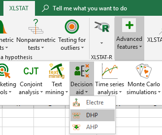 The first step is to generate a design of experiment with the DHP tool. Launch XLSTAT and click on the menu XLSTAT / Advanced features / Decision aid / DHP: