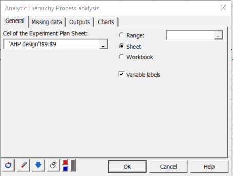 Once all the tables are completed, click on the XLSTAT / Advanced features / Decision aid / AHP menu to open the AHP Method dialog box or click on Run the analysis button situated below the design table.